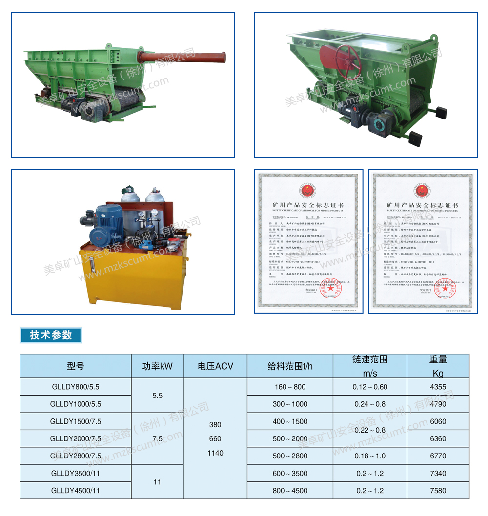 液壓閘門鏈帶式給料機(jī)是通用款式的改進(jìn)型,除了具有原來優(yōu)點(diǎn)外,它通過將通用式的手動(dòng)閘門改為液壓傳動(dòng)閘門,增大了閘門推力,可以快速的關(guān)閉,實(shí)現(xiàn)就地控制和遠(yuǎn)程控制,適用于含煤水率高、需防竄倉(cāng)的場(chǎng)合。
