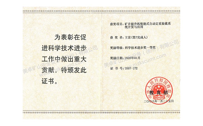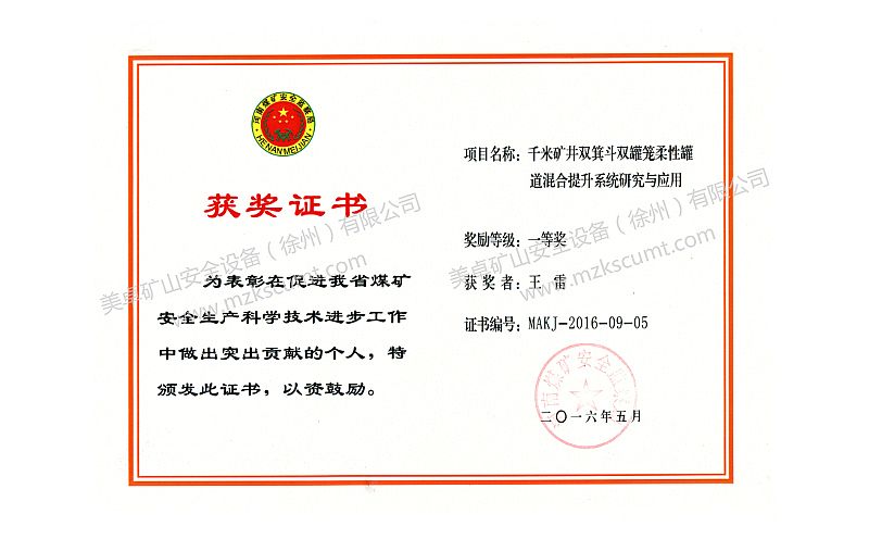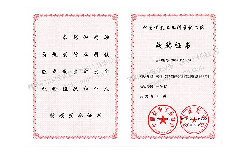 中國煤炭工業科學技術獎一等獎