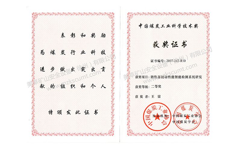 中國煤炭工業科學技術獎二等獎