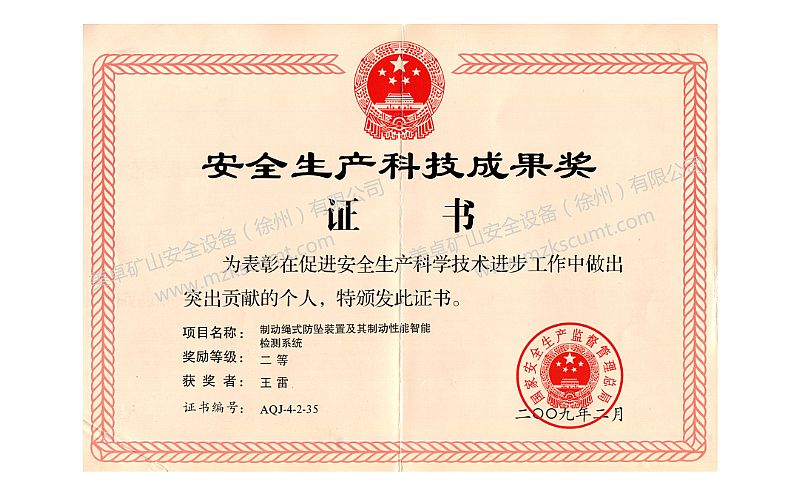 安全生產科技成果獎二等獎