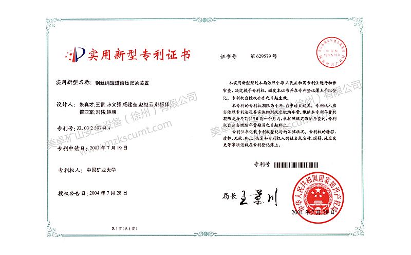液壓張緊裝置專利證書