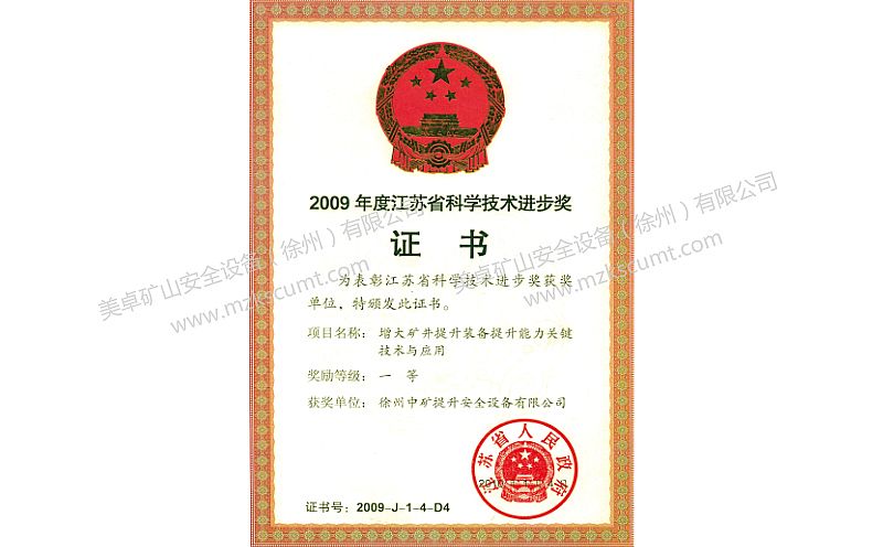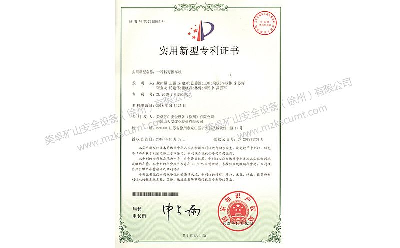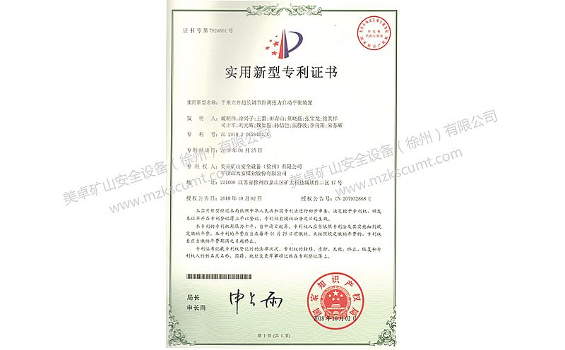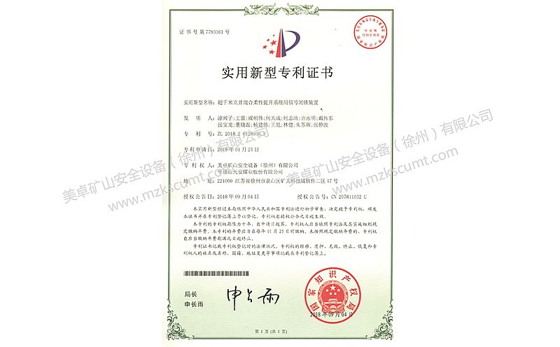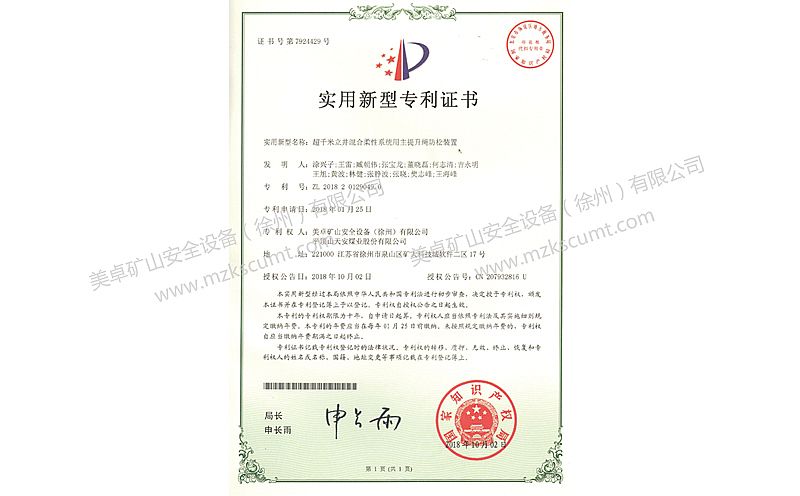 主提升繩防松裝置專利證書