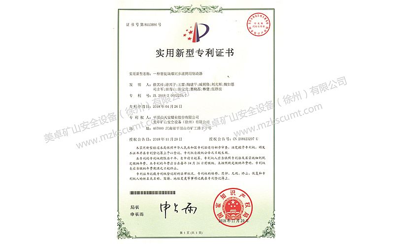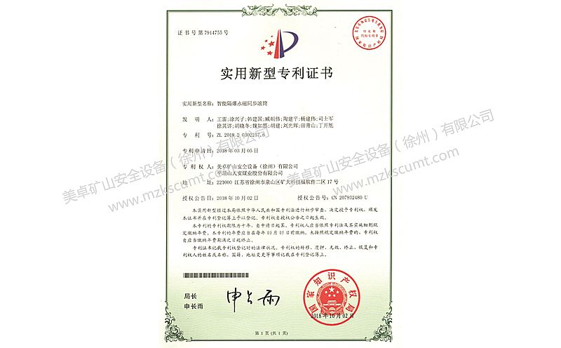 隔爆永磁滾筒專利證書